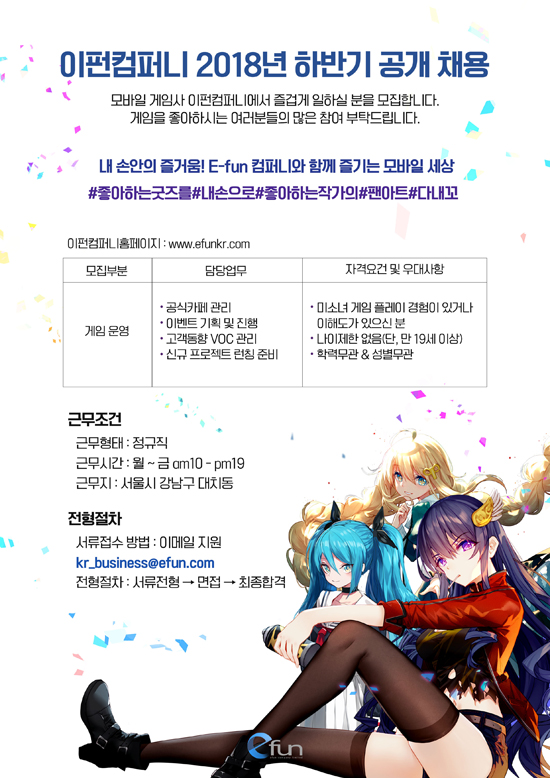 °ÔÀÓÀ» ÁÁ¾ÆÇÏ´Â 19¼¼ ÀÌ»óÀÇ ¼ºÀÎÀ̶ó¸é ´©±¸³ª Áö¿ø °¡´ÉÇϸç, ¹Ì¼Ò³à °ÔÀÓ Ç÷¹ÀÌ °æÇèÀÌ Àְųª ÀÌÇØµµ°¡ ÀÖ´Ù¸é °ø°³ ä¿ë Áö¿ø ½Ã ¿ì´ëÇÑ´Ù. ÀüÇüÀýÂ÷´Â ¼·ùÀüÇüÀ» °ÅÃÄ 1Â÷ ½Ç¹«¸éÁ¢ ¹× ¾÷¹« ÀÌÇØµµ °Ë»ç, 2Â÷ ÀÓ¿ø ¸éÁ¢À» °ÅÃÄ ¿ÃÇØ 12¿ù Áß ÃÖÁ¾ ÀÔ»çÇÏ°Ô µÈ´Ù. °ü·ÃµÈ ÀÚ¼¼ÇÑ Á¤º¸´Â ÀÌÆÝÄÄÆÛ´Ï È¨ÆäÀÌÁö¸¦ ÅëÇØ È®ÀÎÇÒ ¼ö ÀÖ´Ù.