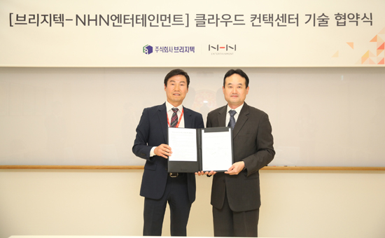 NHN¿£ÅÍÅ×ÀÎ¸ÕÆ®°¡ Äݼ¾ÅÍ ¼Ö·ç¼Ç Àü¹®¾÷ü ¡®ºê¸®ÁöÅØ¡¯°ú ¼ÕÀâ°í Ŭ¶ó¿ìµå ±â¹ÝÀÇ °í°´»ó´ã ¼ºñ½º °³¹ß ¹× ¿î¿µÀ» À§ÇÑ ±â¼ú Çù¾àÀ» ü°áÇß´Ù.