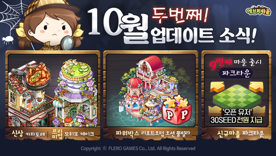 Ç÷¹·Î°ÔÀÓÁî´Â '¿¡ºê¸®Å¸¿î'ÀÇ 10¿ù ¾÷µ¥ÀÌÆ®¸¦ ±â³äÇÑ Æ¯º°ÇÑ À̺¥Æ®¸¦ ¸¶·ÃÇß´Ù. 10¿ù 29ÀϱîÁö ¡®Ä«Â÷Åä·¹ Àü¹®Á¡¡¯ ¶Ç´Â ¡®¸ðÈ÷¶Ç ÄÉÀÌÅ© Àü¹®Á¡¡¯À» 2°³ ±¸¸ÅÇÏ¸é °°Àº °Ç¹°À» Çϳª ´õ ÁõÁ¤Çϰí, VIP/Á¶ÇÕ¿ø ÆÐŰÁö¸¦ ±¸¸ÅÇÏ¸é ½Ãµå¸¦ 20% Ãß°¡·Î Áö±ÞÇÑ´Ù.