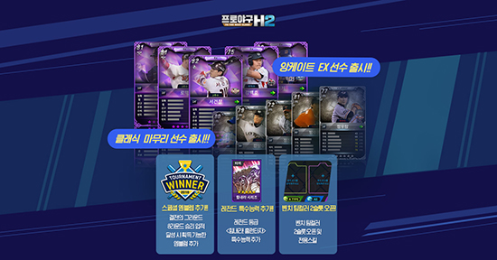 ÇÁ·Î¾ß±¸ H2´Â ÀÌ¿ëÀÚ ÅõÇ¥¸¦ ÅëÇØ ¼±¹ßµÈ ½Å±Ô EX µî±Þ ¼±¼ö Ä«µå¸¦ °ø°³Çß´Ù. EX µî±Þ ¼±¼ö¿¡´Â ÇØÄ¿(NC ´ÙÀ̳뽺), ¼°Çâ(³Ø¼¾ È÷¾î·ÎÁî), ³ª¹Ù·Î(»ï¼º ¶óÀÌ¿ÂÁî), ¸¶ÇØ¿µ(·Ôµ¥ ÀÚÀ̾ðÃ÷) µî ÃÑ 10¸íÀÌ ¼±Á¤µÆ´Ù. ±¸´Ü º° Ŭ·¡½Ä µî±ÞÀÇ ¼Â¾÷ Åõ¼ö¿Í ¸¶¹«¸® Åõ¼öµµ 1¸í¾¿ Ãß°¡Çß´Ù.