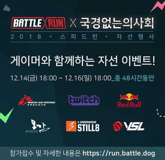 ¸ÞÀÎ ÈÄ¿ø»çÀÎ ¸ÖƼ Ç÷¹ÀÌ¾î ¿£ÅÍÅ×ÀÎ¸ÕÆ®ÀÇ ¼±µÎ ¼ºñ½ºÀÌÀÚ Ä¿¹Â´ÏƼÀÎ Æ®À§Ä¡¿¡¼ ÁøÇàµÇ´Â ¡±Battle.RUN 2018¡±(ÀÌÇÏ ¹èƲ·±)Àº ÁÖ½Äȸ»ç ÀÌÁ¦ÀÌ¿£ÀÌ ÁÖÃÖÇÏ°í ±Û·Î¹ú e½ºÆ÷Å×ÀÎ¸ÕÆ® ½ºÆ¿¿¡ÀÕÀÌ ÁÖ°ü, ±Û·Î¹ú ¿¡³ÊÁöµå¸µÅ© ·¹µåºÒ, VSLÀÌ ÈÄ¿øÇÏ´Â Çà»ç·Î ¿À´Â 12¿ù 14ÀÏ Àú³á 6½ÃºÎÅÍ 12¿ù 16ÀÏ Àú³á 6½Ã±îÁö 48½Ã°£ µ¿¾È Æ®À§Ä¡¸¦ ÅëÇØ »ý¹æ¼Û µÈ´Ù°í ±ÝÀÏ ¹àÇû´Ù.