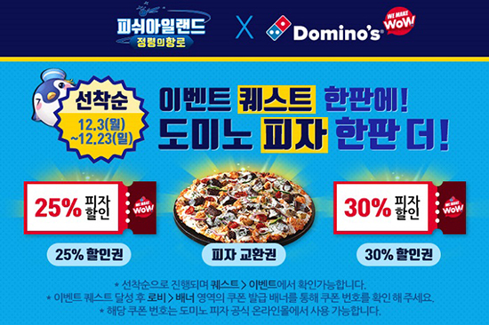 ¿ì¼± 'Çǽ¬¾ÆÀÏ·£µå'¿Í 'ÇÁ·»ÁîÆË'Àº µµ¹Ì³ëÇÇÀÚ ¡®½Å±ÔÇÇÀÚ ±³È¯±Ç(3¸¸3õ¿ø »ó´ç)¡¯°ú ¡®25~30% ÇÇÀÚ ÇÒÀαǡ¯À» Áö±ÞÇÏ´Â ÀΰÔÀÓ À̺¥Æ®¸¦ ½ÃÀÛÇß´Ù. 'Çǽ¬¾ÆÀÏ·£µå'´Â ¡®¸¶¸°¼ÒÁø À̺¥Æ®¡¯¸¦ ¿°í 300¸¶¸°, 600¸¶¸°, 1,200¸¶¸°À» ¼ÒÁøÇÏ´Â ÀÌ¿ëÀÚ¿¡°Ô °¢ °¢ 25% ÇÇÀÚ ÇÒÀαÇ, 30% ÇÇÀÚ ÇÒÀαÇ, ½Å±ÔÇÇÀÚ ±³È¯±ÇÀ» ¼±Âø¼øÀ¸·Î Áö±ÞÇϰí ÀÖ´Ù.