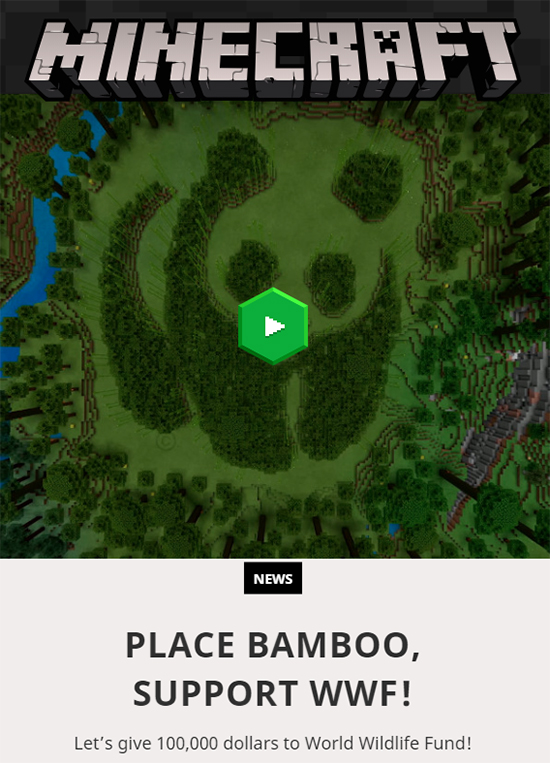 ¸¶ÀÌÅ©·Î¼ÒÇÁÆ®´Â ¸¶ÀÎÅ©·¡ÇÁÆ®ÀÇ º£µå¶ô(Bedrock) ¹öÀü¿¡ °í¾çÀÌ¿Í ÆÇ´Ù°¡ Ãß°¡µÇ´Â °ÍÀ» ±â³äÇØ ȯ°æº¸È£´ÜüÀÎ ¼¼°èÀÚ¿¬±â±Ý(WWF) Áö¿ø Ä·ÆäÀÎÀ» ÁøÇàÇÑ´Ù°í ¹àÇû´Ù.