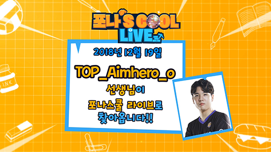 ÀÎÅÍ³Ý °ÔÀÓ Àü¹® ¹æ¼Û±¹ ³ªÀ̽º°ÔÀÓTV°¡ ÁøÇàÇÏ´Â Æ÷Æ®³ªÀÌÆ® ±³À° ¿¹´É ÇÁ·Î±×·¥ ¡®Æ÷³ª½ºÄð ¶óÀ̺ê(Æ÷³ª¡¯s COOL! Live)¡¯¿¡ Æ÷Æ®³ªÀÌÆ® ÇÁ·Î°ÔÀÌ¸Ó ¡®TOP_Aimhero_o¡¯°¡ ÀÏÀÏ ¼±»ý´ÔÀ¸·Î Ã⿬ÇÑ´Ù.