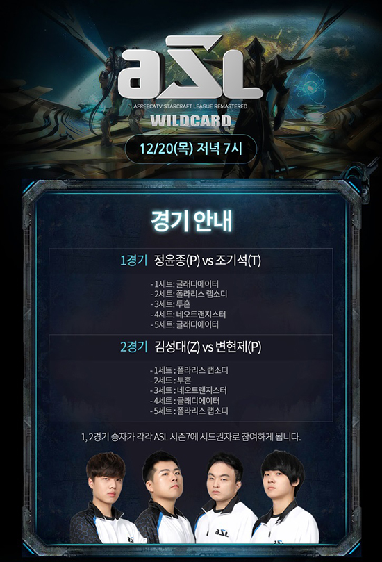 ¾ÆÇÁ¸®Ä«TV´Â 20ÀÏ(¸ñ) ¿ÀÈÄ 7½Ã ¼¿ï ´ëÄ¡µ¿ ÇÁ¸¯¾÷ ½ºÆ©µð¿À¿¡¼ ½ºÅ¸Å©·¡ÇÁÆ®: ¸®¸¶½ºÅÍ(StarCraft¢ç: Remastered)·Î ÁøÇàµÇ´Â '¾ÆÇÁ¸®Ä«TV ½ºÅ¸¸®±× ½ÃÁð 7(ÀÌÇÏ ASL ½ÃÁð 7)'ÀÇ ¿ÍÀϵåÄ«µåÀüÀ» ÁøÇàÇÑ´Ù°í ¹àÇû´Ù. ¿ÍÀϵåÄ«µåÀüÀº Áö³ ASL ½ÃÁð6¿¡¼ ½ÃÁð7 ½Ãµå±ÇÀ» ºÎ¿©¹ÞÀº »óÀ§ 4¸íÀÇ ¼±¼ö Áß 2¸íÀÇ °á¿øÀÌ ¹ß»ýÇÔ¿¡ µû¶ó ÁøÇàÇÏ°Ô µÆ´Ù.