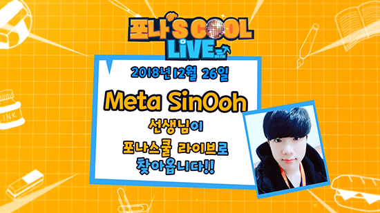 ³ªÀ̽º°ÔÀÓTV°¡ ÁøÇàÇÏ´Â Æ÷Æ®³ªÀÌÆ® ±³À° ¿¹´É ÇÁ·Î±×·¥ ¡®Æ÷³ª½ºÄð ¶óÀ̺ê(Æ÷³ª¡¯s COOL! Live)¡¯¿¡ 12¿ù 26ÀÏ(¼ö), Æ÷Æ®³ªÀÌÆ® ÇÁ·Î°ÔÀÌ¸Ó ¡®Meta SinOoh¡¯ Á¤½Å¿ì ¼±¼ö°¡ ÀÏÀÏ ¼±»ý´ÔÀ¸·Î Ã⿬ÇÑ´Ù.