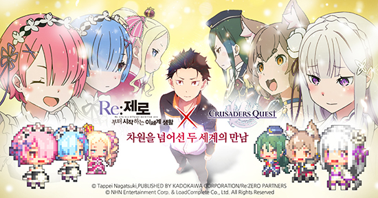 NHN¿£ÅÍÅ×ÀÎ¸ÕÆ®°¡ ¼ºñ½ºÇÏ´Â ¸ð¹ÙÀÏ Çȼ¿¾ÆÆ® ¾×¼Ç RPG 'Å©·ç¼¼ÀÌ´õ Äù½ºÆ®'°¡ ÀϺ» Àα⠾ִϸÞÀÌ¼Ç ¡®Re:Á¦·ÎºÎÅÍ ½ÃÀÛÇÏ´Â À̼¼°è »ýȰ¡¯°ú Äݶ󺸷¹ÀÌ¼Ç ¾÷µ¥ÀÌÆ®¸¦ ½Ç½ÃÇÑ´Ù.