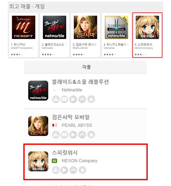 ³Ø½¼Àº ³×¿Â½ºÆ©µð¿À°¡ °³¹ßÇÑ ¸ð¹ÙÀÏ ´ÙÁßÁ¢¼Ó¿ªÇÒ¼öÇà°ÔÀÓ(MMORPG) ¡®½ºÇǸ´À§½Ã(SPIRITWISH)¡¯°¡ ±¸±Û Ç÷¹À̽ºÅä¾î ¸ÅÃâ 5À§¿Í ¾ÖÇà ¾Û½ºÅä¾î ¸ÅÃâ 3À§¸¦ ±â·ÏÇß´Ù°í 21ÀÏ ¹àÇû´Ù.