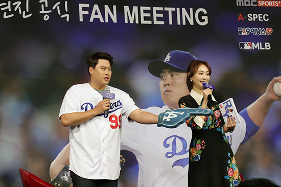 Áö³ 27ÀÏ(ÀÏ) û´ã ¸®º£¶óÈ£ÅÚ¿¡¼ ÁøÇàµÈ ·ùÇöÁø MLB °ø½Ä ÆÒ¹ÌÆÃÀº ¹ÚÁö¿µ MBC½ºÆ÷Ã÷Ç÷¯½º ¾Æ³ª¿î¼°¡ ÁøÇàÀ» ¸Ã¾ÒÀ¸¸ç, ¾à 300¿© ¸íÀÇ ÆÒµéÀÌ Çà»çÀåÀ» °¡µæ ä¿ö ·ùÇöÁøÀ» ÇâÇÑ ±¹³» ÆÒµéÀÇ ³ôÀº Àα⸦ Áõ¸íÇß´Ù.