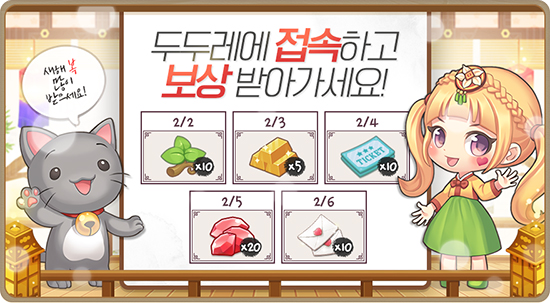 ·¹½ºÅä¶û °æ¿µ °ÔÀÓ ¡®µÎ±ÙµÎ±Ù ·¹½ºÅä¶û¡¯Àº °¡Àå ¸¹Àº ¼³ À̺¥Æ®¸¦ ÁغñÇß´Ù. ¿ì¼±, 2¿ù 1ÀÏ(±Ý) ´Ü ÇÏ·ç GMµÎ·¹¹ÚÀÌ ¹«ÀÛÀ§·Î ¼±Á¤µÈ ÀÌ¿ëÀÚ 20¸íÀÇ ·¹½ºÅä¶û¿¡ ¹æ¹®ÇØ ¹æ¸í·ÏÀ» ³²±â°í ¡®·çºñ 30°³¡¯¸¦ ¼±¹°ÇÏ´Â ¡®GMµÎ·¹¹Ú¿¡°Ô ¼¼¹îµ· ¹ÞÀ¸¼¼¿ä!¡¯¿Í 2¿ù 2ÀϺÎÅÍ 2¿ù 6ÀϱîÁö ¼³ ¿¬ÈÞ ±â°£µ¿¾È ¸ÅÀÏ °ÔÀÓ¿¡ Á¢¼ÓÇÏ¸é ¿äÁ¤³ª¹«, ¸¶¹ýÇÕ±Ý, ·çºñ µî ¸ÅÀÏ ¼·Î ´Ù¸¥ º¸»óÀ» ÁõÁ¤ÇÏ´Â ¡®Ãâ¼® À̺¥Æ®¡¯°¡ ÁøÇàµÈ´Ù.