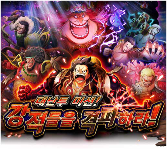¹Ý´ÙÀÌ ³²ÄÚ ¿£ÅÍÅ×ÀÎ¸ÕÆ®¿¡¼ ¼ºñ½ºÇÏ´Â App Store/Google Play¢â Àü¿ë ¸ð¹ÙÀÏ °ÔÀÓ '¿øÇǽº Æ®·¹Àú Å©·çÁî'(ONE PIECE TREASURE CRUISE)¿¡¼ ´Ù¸¥ Ç÷¹À̾îµé°ú ÈûÀ» ÇÕÃÄ °ÀûÀ» °ÝÆÄÇÏ´Â ¹Ì¼ÇÀÎ '´ë³Åõ ¹Ì¼Ç! °ÀûµéÀ» °ÝÆÄÇ϶ó!'¸¦ ÁøÇàÇÑ´Ù.