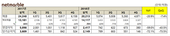 [³Ý¸¶ºí] 4ºÐ±â ¸ÅÃâ 4,871¾ï¡¦18³â ¸ÅÃâ 2Á¶213¾ï¿ø |