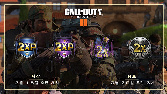 ±ÝÀÏ 2¿ù 15ÀÏ(±Ý)ºÎÅÍ 2¿ù 20ÀÏ (¼ö) ¿ÀÀü 3½Ã±îÁö, ¹ë·±Å¸ÀÎ µ¥ÀÌ¿¡ À̾îÁö´Â ÁÖ¸» µ¿¾È ºí·¢ ¿É½º 4¸¦ Áñ±â´Â ¸ðµç Ç÷¹À̾î´Â ¸ÖƼÇ÷¹ÀÌ(Multiplayer) ¸ðµå¿Í Á»ºñ(Zombies) ¸ðµå¿¡¼ µÎ ¹èÀÇ °æÇèÄ¡ ¹× ¹«±â °æÇèÄ¡, ±×¸®°í ºí·¢¾Æ¿ô(Blackout) ¸ðµå¿¡¼ µÎ ¹èÀÇ °ø·Î¸¦ ȹµæÇÒ ¼ö ÀÖ´Ù. Á»ºñ ¸ðµå¿¡¼ÀÇ ³×ºí·ý Çö󽺸¶ (Nebulium Plasma) ¿ª½Ã Æò¼Òº¸´Ù µÎ ¹è Áö±ÞµÈ´Ù.
