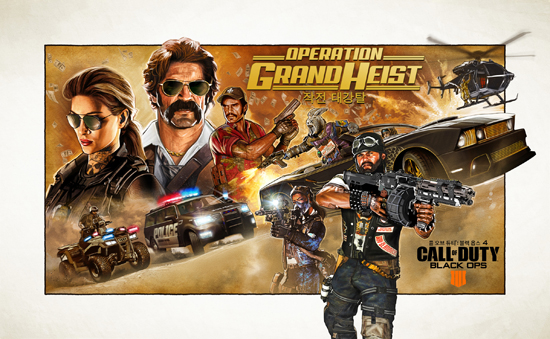 '´ë°Å» ÀÛÀü¿¡¼ ÇÑ ¹æÀ» ³ë·Á¶ó!' ÄÝ ¿Àºê µàƼ Ä¿¹Â´ÏƼ¸¦ À§ÇÑ ´ë±Ô¸ð ÄÜÅÙÃ÷ ¾÷µ¥ÀÌÆ®¿Í ½ÃÁð À̺¥Æ®°¡ ÄÝ ¿Àºê µàƼ: ºí·¢ ¿É½º 4(Call of Duty¢ç: Black Ops 4)¸¦ °Å¸ÇÑ´Ù. ¡®ÀÛÀü ´ë°Å»(Operation Grand Heist)¡¯·Î ¸í¸íµÈ À̹ø ½ÃÁð ÄÜÅÙÃ÷´Â ½Å±Ô ½ºÆä¼È¸®½ºÆ®(Specialist), µÎ °³ÀÇ ½Å±Ô ¸ÖƼÇ÷¹ÀÌ(Multiplayer) ¸Ê, ºí·¢¾Æ¿ô(Blackout) ¸Ê ³»¿¡¼ Ç÷¹ÀÌÇÒ ¼ö ÀÖ´Â »õ·Î¿î Áö¿ª, ´Ù¾çÇÑ °³ÀÎÈ ¼öÁýǰ°ú ¾×¼¼¼¸®, ½Å±Ô À̵¿ ¼ö´Ü, »õ·Î¿î °ÔÀÓ ¸ðµå µî °ÔÀÓ Àü¹Ý¿¡ °ÉÃÄ »õ·Î¿î Áñ±æ°Å¸®¸¦ Á¦°ø, ±ÝÀÏ PlayStation¢ç 4 Àû¿ëÀ» ½ÃÀÛÀ¸·Î PC¸¦ Æ÷ÇÔÇÑ Àü Ç÷§Æû¿¡ È®´ë Àû¿ëµÉ ¿¹Á¤ÀÌ´Ù.