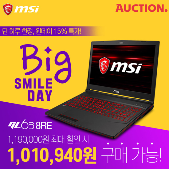 [MSI] GL63 8RE °ÔÀÌ¹Ö ³ëÆ®ºÏ, 15% ÇÒÀÎ ¿øµ¥ÀÌ ÆÄ°Ý Ư°¡ |