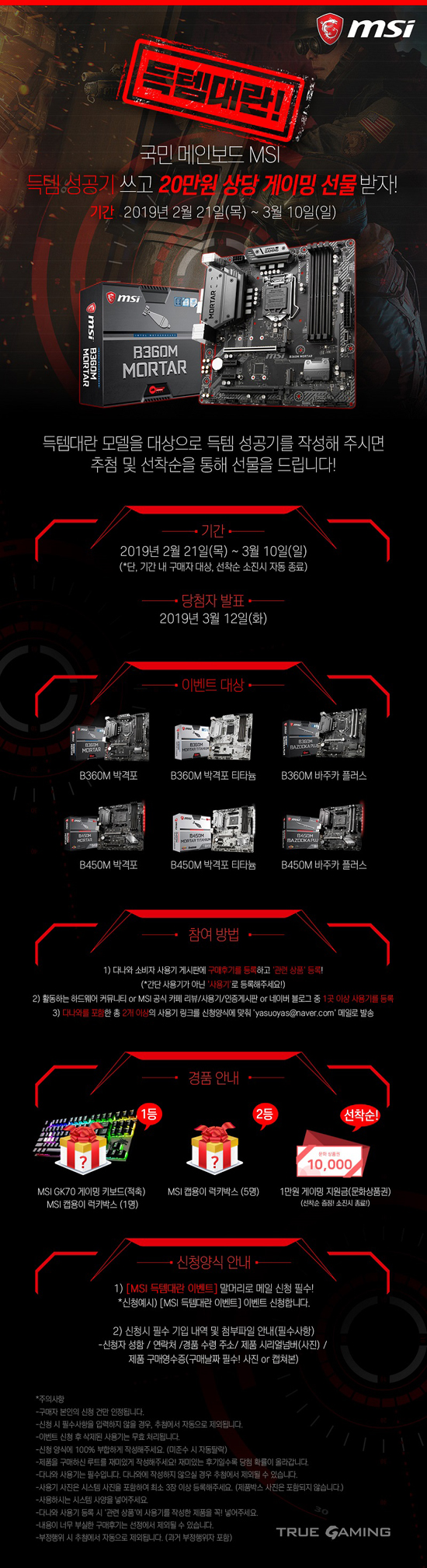 º» À̺¥Æ®´Â 2¿ù 21ÀÏ(¸ñ)ºÎÅÍ 3¿ù 10ÀÏ(ÀÏ)±îÁö ÁøÇàÇϸç, ±â°£ ³» ±¸¸Å °í°´À» ´ë»óÀ¸·Î ¡®µæÅÛ Èı⡯¸¦ ÀÛ¼ºÇÑ °í°´¿¡°Ô 20¸¸¿ø »ó´çÀÇ °æÇ°À» ÁõÁ¤ÇÑ´Ù. À̺¥Æ® °æÇ°Àº ¡®MSI GK70 °ÔÀÌ¹Ö Å°º¸µå(ÀûÃà)-MSI ĸ¿ëÀÌ ·°Å°¹Ú½º(1¸í)¡¯, ¡®MSI ĸ¿ëÀÌ ·°Å°¹Ú½º (5¸í)¡¯ Ãß÷ ÁõÁ¤À̸ç, À̺¥Æ®¿¡ Âü¿©ÇÑ ¸ðµç °í°´¿¡°Ô 1¸¸¿ø °ÔÀÌ¹Ö Áö¿ø±Ý(¹®È»óǰ±Ç, ¼±Âø¼ø ÁõÁ¤)µµ ÁõÁ¤ÇÒ ¿¹Á¤ÀÌ´Ù.
