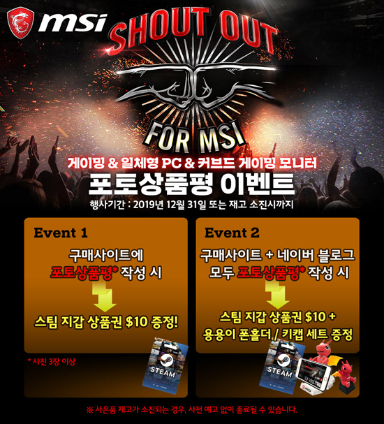 2019³â 12¿ù 31ÀϱîÁö ÁøÇàµÇ´Â À̹ø ÇÁ·Î¸ð¼ÇÀº Çà»ç ±â°£ µ¿¾È MSI °ÔÀÌ¹Ö PC¿Í °ÔÀÌ¹Ö ¸ð´ÏÅÍ, ÀÏüÇü PC¸¦ ±¸¸ÅÇϰí, ±¸¸Å ¼îÇθô¿¡ 3Àå ÀÌ»óÀÇ »çÁøÀÌ Æ÷ÇÔµÈ Æ÷Åä »óǰÆòÀ» ÀÛ¼ºÇϸé $10ÀÇ ½ºÆÀ¿ù·¿ »óǰ±ÇÀ» ÁõÁ¤Çϰí, ³×À̹ö ºí·Î±×¿¡ Ãß°¡ »óǰÆòÀ» ÀÛ¼ºÇÏ¸é ¿ë¿ëÀÌ ÆùȦ´õ¿Í Űĸ ¼¼Æ®¸¦ ÁõÁ¤ÇÑ´Ù.