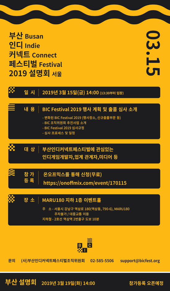 ¸Å³â ÃÖ´Ù °ü¶÷°´ ¼ö¸¦ ±â·ÏÇØ ³ª°¡´Â ¡®BIC Festival¡¯ ¿ÃÇØ·Î 5ȸ°¸¦ ¸ÂÀÌÇÑ´Ù. ÁÖ°ü»çÀÎ BIC Á¶Á÷À§´Â 9¿ù 5ÀϺÎÅÍ 8ÀϱîÁö ÁøÇàµÇ´Â ¡®BIC Festival 2019¡¯ °³ÃÖ¸¦ ¾ÕµÎ°í ÁøÇàÇÏ´Â ¼³¸íȸ¸¦ ÅëÇØ ¿ÃÇØ º¯ÈÁ¡°ú ÁÖ¿ä »ç¾÷, Àεð°ÔÀÓ Á¢¼ö ¾È³» ¹× ¼±Á¤ ½É»ç ¹æ¾ÈÀ» ¹ßÇ¥ÇÒ °èȹÀÌ´Ù.