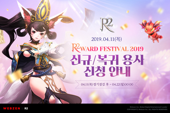À¥Á¨Àº ¿À´Ã(4¿ù 11ÀÏ) ¡®R2¡¯ÀÇ ¡®R2WARD FESTIVAL 2019¡¯ À̺¥Æ® Ƽ¡ ÆäÀÌÁö¸¦ ¿°í 4¿ù 22ÀϱîÁö ȸ¿øµéÀ» ´ë»óÀ¸·Î ½Å±Ô/º¹±Í ½Åû À̺¥Æ®¸¦ ÁøÇàÇÑ´Ù.