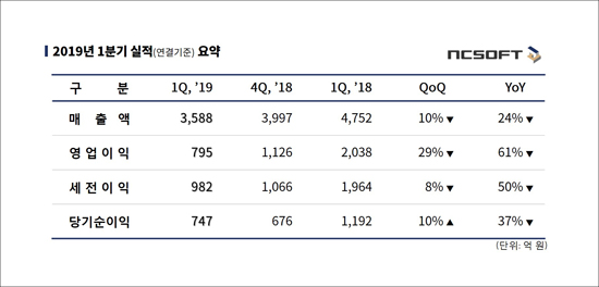 [¿£¾¾¼ÒÇÁÆ®] 2019³â 1ºÐ±â ½ÇÀû ¹ßÇ¥ |