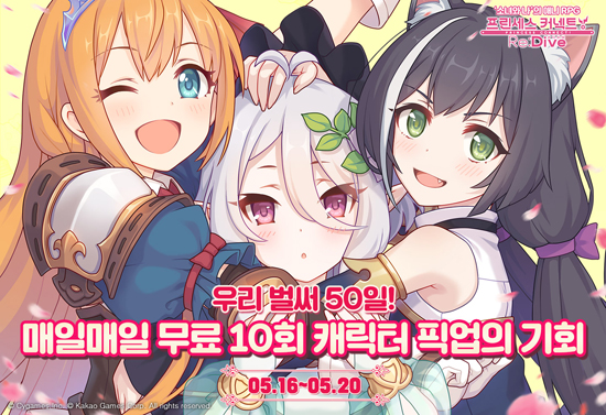 īī¿À°ÔÀÓÁî´Â 16ÀÏ(¸ñ), Àα⠸ð¹ÙÀÏ ¾Ö´Ï¸ÞÀÌ¼Ç RPG ¡®ÇÁ¸°¼¼½º Ä¿³ØÆ®! Re:Dive(¸®:´ÙÀ̺ê)¡¯ÀÇ ¼ºñ½º 50ÀÏ ±â³ä À̺¥Æ®¸¦ ½ÃÀÛÇß´Ù.