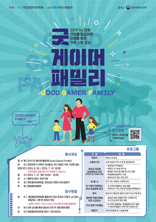°ÔÀÓ¹°°ü¸®À§¿øÈ¸(ÀÌÇÏ ¡®°ÔÀÓÀ§¡¯)´Â ¿À´Â 7¿ù 27ÀÏ(Åä) â¿øNCÆÄÅ© ¸¶»ê±¸Àå(°æ»ó³²µµ â¿ø½Ã ¸¶»êȸ¿ø±¸ ¼ÒÀç)¿¡¼ °ÔÀÓÀ» ÅëÇÑ °¡Á· ¼ÒÅë ±³½Ç¡¸2019 ±Â °ÔÀÌ¸Ó ÆÐ¹Ð¸®(Good Gamer Family)(â¿ø)¡¹¸¦ °³ÃÖÇÑ´Ù.