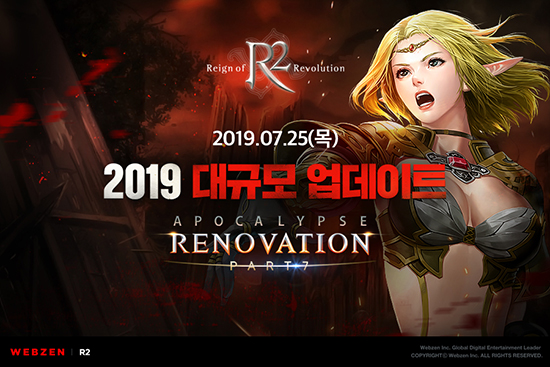 À¥Á¨Àº ¿À´Ã(7¿ù 12ÀÏ), ¡®R2¡¯ÀÇ Æ¯º° ¾È³» ÆäÀÌÁö(http://r2.webzen.co.kr/events/Apocalypse7)¸¦ ÅëÇØ ¡®¾î½Ø½Å Ŭ·¡½º¡¯ °³¼± ¹× ¡®µ¥¸ðÀÚ¸£ ¼¶ ¿µÁö Äù½ºÆ®¡¯ Ãß°¡ µîÀÇ ³»¿ëÀÌ Æ÷ÇÔµÈ ¡®APOCALYPSE PART 7: RENOVATION ¾÷µ¥ÀÌÆ®¿¡ ´ëÇÑ Á¤º¸¸¦ »çÀü °ø°³Çß´Ù.