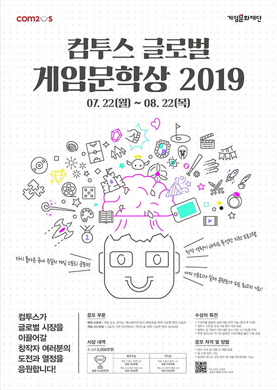ÄÄÅõ½º°¡ ÁÖÃÖÇÏ°í °ÔÀÓ¹®ÈÀç´ÜÀÌ ÈÄ¿øÇÏ´Â ±¹³» À¯ÀÏÀÇ °ÔÀÓ ½ºÅ丮 °ø¸ðÀü, ¡®ÄÄÅõ½º ±Û·Î¹ú °ÔÀÓ¹®Çлó 2019¡¯°¡ ÀÀ¸ðÀÛ Á¢¼ö¸¦ ½ÃÀÛÇß´Ù.