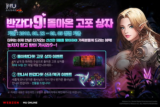 À¥Á¨ÀÌ ´Ù°¡¿À´Â 9¿ùÀ» ¸ÂÀÌÇØ PC MMORPG ¡®¹Â ¿Â¶óÀΡ¯ÀÇ È¸¿øµéÀ» À§ÇÑ ¾ÆÀÌÅÛ È¹µæ À̺¥Æ®¸¦ ÁغñÇß´Ù.