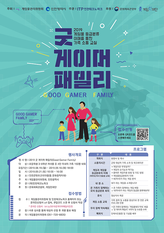 °ÔÀÓ¹°°ü¸®À§¿øÈ¸(ÀÌÇÏ °ÔÀÓÀ§)´Â ¿À´Â 9¿ù 21ÀÏ(Åä) ¡®ÀÎõÄÜÅÙÃ÷ÄÚ¸®¾Æ·¦ Æ´ ¹®ÈâÀÛÁö´ë¡¯(ÀÎõ ¹ÌÃßȦ±¸ ¼ÒÀç)¿¡¼ °ÔÀÓÀ» ÅëÇÑ °¡Á· ¼ÒÅë ±³½Ç ¡¸2019 ±Â °ÔÀÌ¸Ó ÆÐ¹Ð¸®(Good Gamer Family)(ÀÎõ)¡¹¸¦ °³ÃÖÇÑ´Ù.