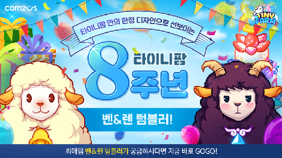 ÄÄÅõ½º°¡ °³¹ßÇÏ°í ¼ºñ½ºÇϴ ŸÀÌ´ÏÆÊÀº Áö³ 2011³â Ãâ½Ã ÀÌÈÄ ¼ö ¸¹Àº ±Û·Î¹ú À¯Àúµé¿¡°Ô »ç¶û¹ÞÀ¸¸ç ´©Àû ´Ù¿î·Îµå 2õ¸¸ °ÇÀ» ±â·ÏÇÑ Àα⠰ÔÀÓÀÌ´Ù. À̹ø À̺¥Æ®´Â 8³â°£ ŸÀÌ´ÏÆÊÀ» ¾Ö¿ëÇØ¿Â À¯ÀúµéÀ» À§ÇØ Æ¯º° Á¦ÀÛÇÑ ±ÂÁî ÁõÁ¤, ÇÑÁ¤ÆÇ ij¸¯ÅÍ Á¦°ø µî ´Ùä·Î¿î ÇüÅ·ΠÁøÇàµÉ ¿¹Á¤ÀÌ´Ù.