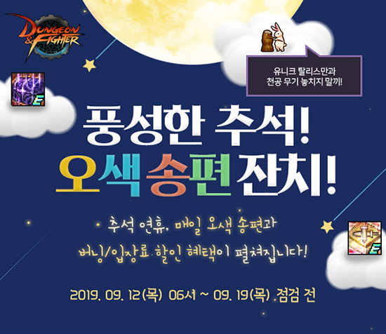 ¡®´øÀü¾ØÆÄÀÌÅÍ¡¯¿¡¼´Â 12ÀϺÎÅÍ 19ÀϱîÁö ÀûÁ¤ ·¹º§ ´øÀüÀ» ¿Ï·áÇÏ¸é ¡®Å»¸®½º¸¸/·é Ưº° »óÀÚ¡¯, ¡®Ãß¼® À¯´ÏÅ© ¹® Ä«µå¡¯, ¡®Ãß¼® ÆÄ¹Ö Àç·á ¼±ÅûóÀÚ¡¯ µîÀ» ¼±¹°Çϰí, ÁöÁ¤µÈ ÀÏÀÚ¿¡ ¸ÂÃç Âü¿©ÇÒ °æ¿ì º¸»óÀ» µÎ ¹è·Î Áö±ÞÇÑ´Ù.