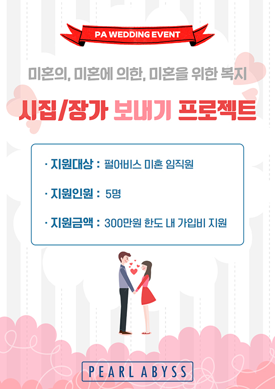 °ÔÀÓ¾÷°è¿¡ À¯ÀÏÇÏ°Ô ÀÚ³à 1¸í´ç ¾çÀ°ºñ·Î ¸Å¿ù 50¸¸¿ø(Àοø Á¦ÇÑ ¾øÀ½)À» Áö±ÞÇϰí ÀÖ´Â ÆÞ¾îºñ½º°¡ À̹ø¿¡´Â °ÔÀÓ °³¹ß°ú ÀÚ½ÅÀÇ ¾÷¹« ºÐ¾ß¿¡¼­ ¿­Á¤ÀûÀ¸·Î ÀÏÇÏ´Â ¹ÌÈ¥ Á÷¿øµéÀ» ´ë»óÀ¸·Î º¹Áö À̺¥Æ®¸¦ ±âȹÇß´Ù.