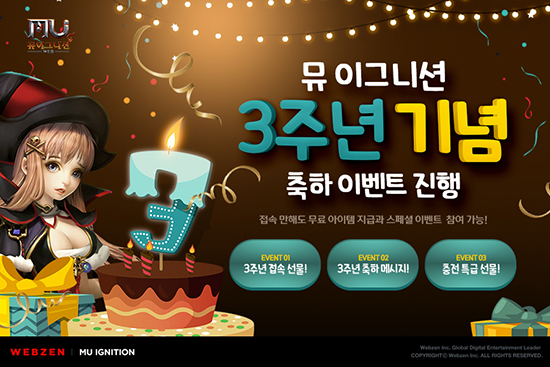 À¥Á¨Àº ¿À´Ã ¡®¹Â À̱״ϼǡ¯ÀÇ °ÔÀÓ Ãâ½Ã 3ÁÖ³âÀ» ¸Â¾Æ ¡®3ÁÖ³â Á¢¼Ó ¼±¹° À̺¥Æ®¡¯, ¡®3ÁÖ³â ÃàÇÏ ¸Þ½ÃÁö À̺¥Æ®¡¯, ¡®ÃæÀü Ư±Þ ¼±¹° À̺¥Æ®¡¯ µî ´Ù¾çÇÑ À̺¥Æ®¸¦ ÁøÇàÇÑ´Ù.