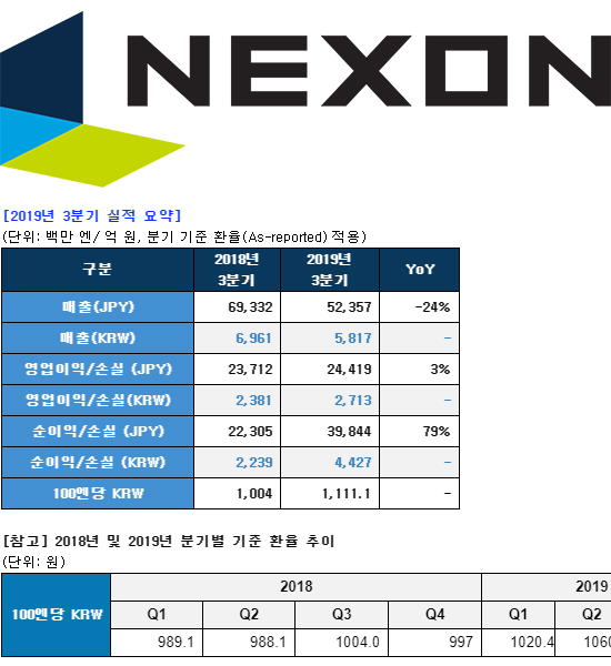 ³Ø½¼(NEXON Co., Ltd.)Àº 7ÀÏ ÀÚ»çÀÇ 2019³â 3ºÐ±â ¿¬°á ½ÇÀûÀ» ¹ßÇ¥Çß´Ù.