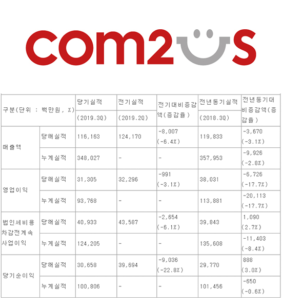 [ÄÄÅõ½º] 2019³â 3ºÐ±â ½ÇÀû¹ßÇ¥ ¸ÅÃâ 1162¾ï ¿ø, ¿µ¾÷ÀÌÀÍ 313¾ï ¿ø |