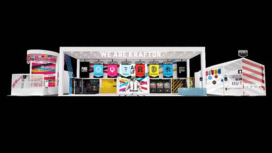 Å©·¡ÇÁÅæ ºÎ½º´Â Áö½ºÅ¸ ÃÖÃÊ·Î ¾ß¿ÜÀü½ÃÀå¿¡¼ 3°³¼Ò(27mx9m)ÀÇ °ø°£À» È®º¸ÇÏ¿© ºÎ½º¸¦ ¼±º¸ÀÏ ¿¹Á¤ÀÌ´Ù. ºÎ½º µðÀÚÀÎ ÄܼÁÆ®´Â Å©·¡ÇÁÅæ ¿¬ÇÕÀÌ Áö´Ñ °³¼º°ú ±¸Á¶¸¦ ½Ã°¢È Çß´Ù. ºÎ½º Áß¾Ó ¡°WE ARE KRAFTON¡±°ú ¿¬ÇÕ ·Î°í ÈÖÀå ¿µ»óÀ¸·Î ¸ðµç ¿¬ÇÕÀÌ ¸ð¿© ÀÌ·ç¾îÁö´Â Àǹ̸¦ Àü´ÞÇϰíÀÚ ÇÑ´Ù.