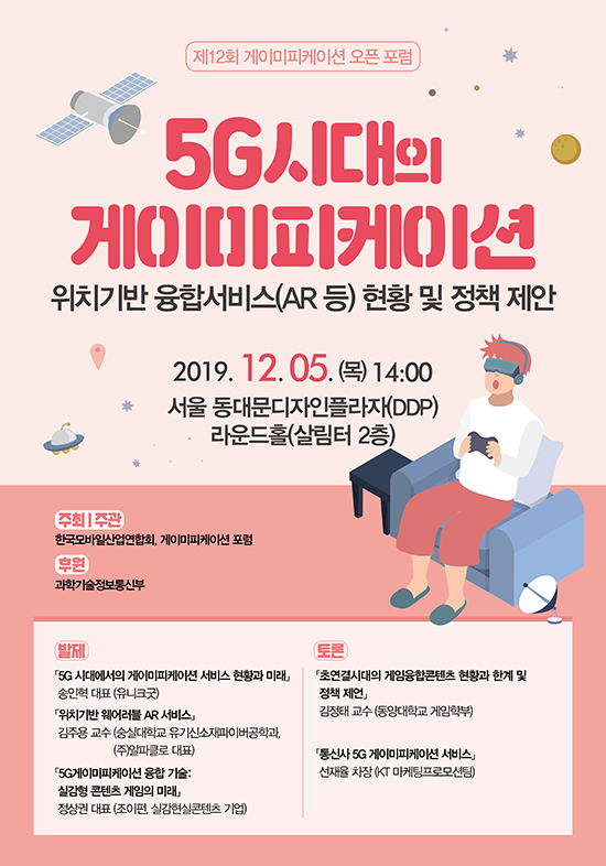 ¡®5G½Ã´ëÀÇ °ÔÀ̹ÌÇÇÄÉÀ̼ǡ¯À̶ó´Â ÁÖÁ¦·Î ¿¸®´Â À̹ø Æ÷·³Àº 4Â÷ »ê¾÷Çõ¸íÀÇ ÇÙ½É ÀÎÇÁ¶ó ±â¼ú·Î 5¼¼´ë À̵¿Åë½Å(5G)ÀÌ ´ëµÎµÇ´Â ½ÃÁ¡¿¡¼ °ÔÀ̹ÌÇÇÄÉÀ̼ÇÀÇ Àû¿ë »ç·Ê ¹× °¡´É¼ºÀ» °øÀ¯Çϰí Á¤Ã¥ ¹æÇâÀ» Á¦½ÃÇϱâ À§ÇØ ±âȹµÇ¾ú´Ù.