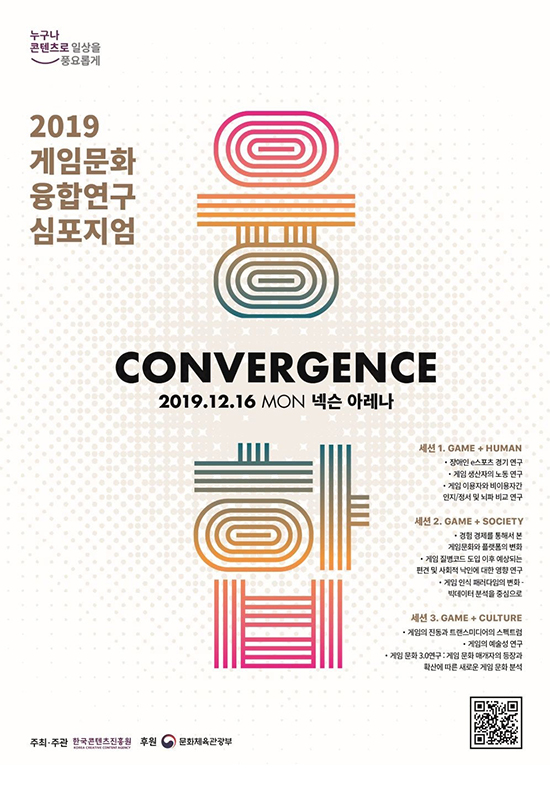 ¹®ÈüÀ°°ü±¤ºÎ¿Í Çѱ¹ÄÜÅÙÃ÷ÁøÈï¿ø(ÄÜÁø¿ø)Àº ¿À´Â 16ÀÏ ¿ÀÈÄ 2½Ã¿¡ ¼¿ï ¼Ãʱ¸ ³Ø½¼ ¾Æ·¹³ª¿¡¼ ¡®2019 °ÔÀÓ¹®È À¶ÇÕ¿¬±¸ ½ÉÆ÷Áö¾ö ¡¸CONVERGENCE(ÄÁ¹öÀü½º)¡¹¡¯¸¦ °³ÃÖÇÑ´Ù.