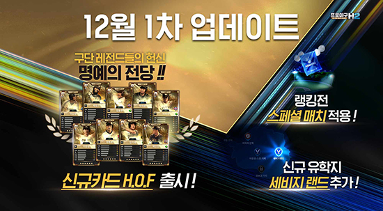 ¿£¾¾¼ÒÇÁÆ®(¿£¾¾(NC))ÀÇ ¸ð¹ÙÀÏ ¾ß±¸ ¸Å´ÏÁö¸ÕÆ® °ÔÀÓ ¡®ÇÁ·Î¾ß±¸ H2¡¯°¡ ½Å±Ô ¡®HOF µî±Þ¡¯ ¼±¼öÄ«µå¸¦ ¾÷µ¥ÀÌÆ®Çß´Ù.