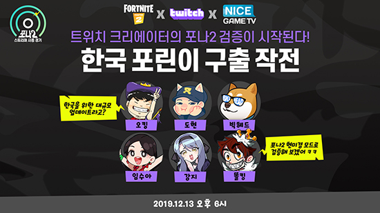 ¿¡ÇȰÔÀÓÁî´Â ³ªÀ̽º°ÔÀÓ TV¿Í ÇÔ²² ¿À´Â 13ÀÏ ¿ÀÈÄ 6½Ã¿¡ ¡®Çѱ¹ Æ÷¸°ÀÌ ±¸Ãâ ÀÛÀü, Æ÷³ª2 ½ºÆ®¸®¸Ó »çÁ¾ °æ±â¡¯ Æ®À§Ä¡ À̺¥Æ® »ý¹æ¼ÛÀ» ÁøÇàÇÒ ¿¹Á¤ÀÌ´Ù. À̹ø À̺¥Æ®¿¡¼­´Â ¿ÀÅ·, µµÇö, ºòÇìµå, °­Áö, ÀÓ¼ö¾Æ, ¶ÊÅ· µî Àαâ Å©¸®¿¡ÀÌÅ͵éÀÌ »õ·Ó°Ô ¹Ù²ï 'Æ÷Æ®³ªÀÌÆ®' Á¦2¸·À» ¸é¹ÐÈ÷ Ç÷¹ÀÌÇØ º¼ ¿¹Á¤ÀÌ´Ù.