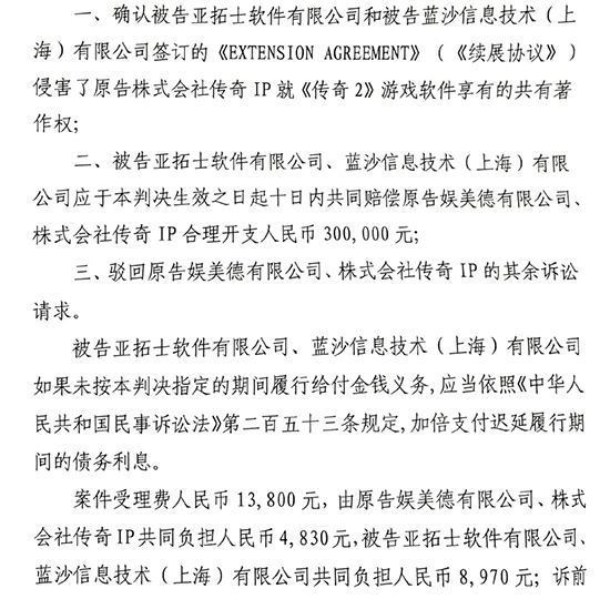¥µ. µÎ ÇǰíÀÇ ÇàÀ§°¡ Ä§ÇØ°¡ ¼º¸³ÇÒ °æ¿ì ¹ý¿¡ µû¶ó ºÎ´ãÇÒ ¹ý·üÃ¥ÀÓ: "Ä§ÇØÁ¤ÁöÀÇ ¹Î»çÃ¥ÀÓ °ü·Ã, µÎ ÇÇ°í°¡ ü°áÇÑ »ç°Ç ¿¬Àå°è¾àÀº ¹«È¿°è¾àÀÌ ¾Æ´ÏÁö¸¸ ÇÇ°í ¶õ»þȸ»ç´Â ¼±ÀÇÀÇ °è¾à »ó´ë¹æÀÌ ¾Æ´Ï¹Ç·Î µÎ ÇÇ°í°¡ Ä§ÇØÇàÀ§¸¦ ±â¹ÝÀ¸·Î ü°áÇÑ »ç°Ç ¿¬Àå°è¾àÀº ¸¶¶¥È÷ ÀÌÇàÀÌ Á¤ÁöµÇ¾î¾ß ÇÑ´Ù. ±×·¯³ª °´°üÀûÀ¸·Î ºÃÀ» ¶§ ÇÇ°í ¶õ»þȸ»ç¸¦ ºñ·ÔÇÑ ¼¢´Ù ÃøÀº Áß±¹¿¡¼ ÀÌ¹Ì »ç°Ç °ÔÀÓÀ» 18³âÀ̶õ ¿À·£ ½Ã°£À» ½ÇÁ¦ ¿î¿µÇÏ¿´°í ÇØ´ç °ÔÀÓÀÇ ¿î¿µÀ» À§ÇØ ´ë·® ÅõÀÔÇÏ°í ±â¿©ÇÏ¿´À¸¸ç ºñ±³Àû Å« À¯Àú ±âÃÊ¿Í ºÎ°¡°¡Ä¡¸¦ ÃàÀûÇÑ Á¡À» °¨¾ÈÇϸé, ÀÌÀÍ Çü·® µî Â÷¿ø¿¡¼ ÇöÀç °øÀ¯ÀúÀÛ±ÇÀÚ°¡ ÇØ´ç °ÔÀÓ ¼ÒÇÁÆ®¿þ¾îÀÇ °øÀ¯ÀúÀÛ±ÇÀÇ Çà»ç¿¡ ´ëÇØ ÀÏÄ¡ÇÑ ÀǰßÀ» µµÃâÇÏÁö ¸øÇÑ »óȲ¿¡¼ ÇØ´ç °ÔÀÓ ¼ÒÇÁÆ®¿þ¾î¸¦ ÇÇ°í ¶õ»þȸ»ç°¡ ¿î¿µÇÏ´Â °ÍÀÌ ¿î¿µÀ» Á¤ÁöÇÏ´Â °Íº¸´Ù °øÀ¯ÀúÀÛ±ÇÀÚÀÇ °øµ¿ÀÇ ÀÌÀÍ¿¡ ´õ À¯¸®ÇÏ´Ù. µû¶ó¼ ÇÇ°í ¶õ»þȸ»ç´Â »ç°Ç °ÔÀÓ ¼ÒÇÁÆ®¿þ¾î PCŬ¶óÀÌ¾ðÆ® ¿Â¶óÀΰÔÀÓ Áß¹®¹öÀüÀÇ ¿î¿µÀ» Á¤ÁöÇÏÁö ¾Ê¾Æµµ µÇÁö¸¸ ÇØ´ç ¼ÒÇÁÆ®¿þ¾î ¿î¿µ °úÁ¤¿¡¼ ¹ß»ýÇÑ ¼öÀÍ¿¡ ´ëÇØ¼´Â ¿©ÀüÈ÷ °øÀ¯ÀúÀÛ±ÇÀÚ¿¡°Ô ¹èºÐÇÏ¿©¾ß ÇÑ´Ù."