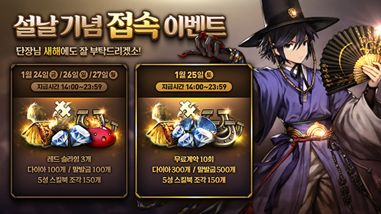 ¸ð¹ÙÀÏ RPG ¡®ºê¶ó¿î´õ½ºÆ®¡¯´Â ¼³ ¿¬ÈÞ ±â°£ µ¿¾È °ÔÀÓ¿¡ Á¢¼Ó¸¸ ÇØµµ ¸ÅÀÏ 5¼º ½ºÅ³ºÏ Á¶°¢, ´ÙÀÌ¾Æ µî ¾ÆÀÌÅÛÀ» Á¦°øÇϸç, ƯÈ÷ ¼³ ´çÀÏ¿¡´Â ¹«·á °è¾à 10ȸ¸¦ Ãß°¡ Áö±ÞÇÑ´Ù. ¶Ç ¿À´Â 30ÀϱîÁö ÁÖ¾îÁö´Â ¹Ì¼ÇÀ» ¼öÇàÇÏ¸é ½Å³â ±â³ä 4¼º ¹æ¾îÇü ¡®À̸®½º¡¯ÀÇ ÄÚ½ºÆ¬ÀÌ ¹«·á·Î ÁÖ¾îÁö°í, Àü¼³ °è¾à¼, °í±Þ °è¾à¼, 6¼º ·é Á¶°¢ ¼±ÅÃ±Ç µî ǪÁüÇÑ º¸»óÀÌ Á¦°øµÈ´Ù.