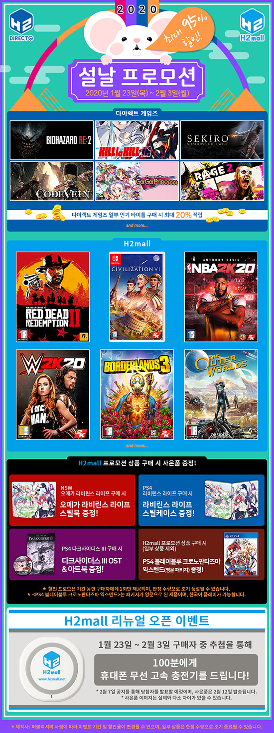 ¿¡ÀÌÄ¡Åõ ÀÎÅÍ·ºÆ¼ºê(ÀÌÇÏ H2 INTERACTIVE)´Â ÀÚ»çÀÇ ÆÐŰÁö ¼îÇθôÀ» ¸®´º¾óÇÏ¿© H2¸ô(www.h2mall.net)·Î »õ·Ó°Ô ¿ÀÇÂÇÏ¿´À¸¸ç, µðÁöÅÐ À¯Åë ¼ºñ½ºÀÎ ´ÙÀÌ·ºÆ® °ÔÀÓÁî(www.directg.net)¿Í ÇÔ²² 2020³â ¼³³¯À» ¸Â¾Æ Ưº° ÇÒÀÎÀ» ºñ·ÔÇÑ ´Ù¾çÇÑ ÇÁ·Î¸ð¼ÇÀ» ÁøÇàÇÑ´Ù°í ¹àÇû´Ù.