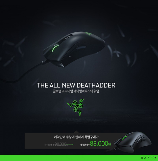 RAZER°¡ Àü ¼¼°è¿¡¼ 1000¸¸´ë ÀÌ»ó ÆÇ¸ÅµÈ º£½ºÆ® °ÔÀÌ¹Ö ¸¶¿ì½º µ¥½º¿¡´õÀÇ ÃֽŠ¸ðµ¨ ¡®Razer DeathAdder V2¡¯¸¦ 11ÀÏ ±¹³»¿¡ °ø½Ä Ãâ½ÃÇÑ´Ù.