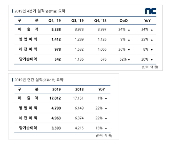 ¿£¾¾¼ÒÇÁÆ®(¿£¾¾(NC))°¡ 2019³â ¿¬°£ ½ÇÀû °á»ê(ÀÌÇÏ ¿¬°á±âÁØ) °á°ú ¸ÅÃâ 1Á¶ 7,012¾ï¿ø, ¿µ¾÷ÀÌÀÍ 4,790¾ï ¿ø, ´ç±â¼øÀÌÀÍ 3,593¾ï ¿øÀ» ±â·ÏÇß´Ù.