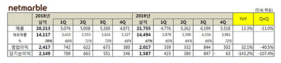 13ÀÏ ³Ý¸¶ºíÀº Áö³ÇØ 4ºÐ±â ¿¬°á±âÁØÀ¸·Î ¸ÅÃâ 5,518¾ï¿ø, ¿µ¾÷ÀÌÀÍ 502¾ï¿øÀ» ±â·ÏÇß´Ù°í ¹àÇû´Ù.