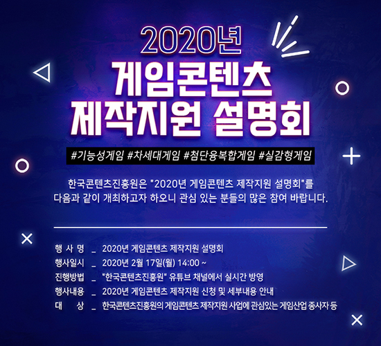 ¹®ÈüÀ°°ü±¤ºÎ¿Í Çѱ¹ÄÜÅÙÃ÷ÁøÈï¿ø(ÄÜÁø¿ø)Àº Áö³ 11ÀÏ ¡®2020 °ÔÀÓÄÜÅÙÃ÷ Á¦ÀÛÁö¿ø »ç¾÷¡¯À» °ø°íÇϰí, 17ÀÏ ÄÜÁø¿ø À¯Æ©ºê ä³Î ½Ç½Ã°£ ¹æ¼ÛÀ» ÅëÇØ ÀÌ¿¡ ´ëÇÑ ¼³¸íȸ¸¦ °³ÃÖÇÑ´Ù.