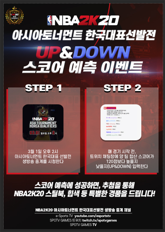 2K´Â ½ºÆ÷Ƽºñ°ÔÀÓÁî (SPOTV GAMES) ¿Í ÇÔ²² ¡®NBA 2K20 ¾Æ½Ã¾Æ Åä³Ê¸ÕÆ® Çѱ¹ ´ëÇ¥ ¼±¹ßÀü¡¯ÀÇ º»¼±À» ¿À´Â 3¿ù 1ÀÏ ÁøÇàÇÑ´Ù°í ¹àÇû´Ù.