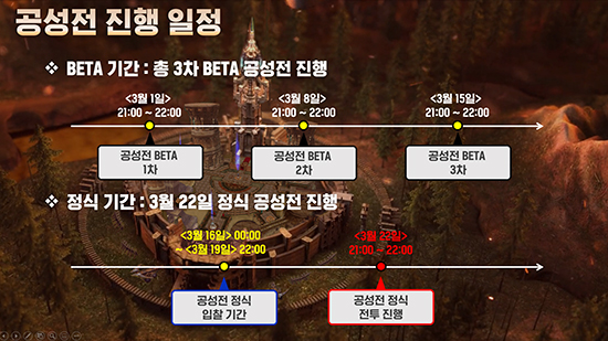 ¸ÕÀú, ù ¹øÂ° °ø¼ºÀüÀÎ ¡®ÀÌ±×³×¾Æ Á¤½Ä °ø¼ºÀü¡¯¿¡ ¾Õ¼ ¾ÈÁ¤¼º °ËÁõÀ» À§ÇÑ ¡®°ø¼ºÀü BETA¡¯°¡ 3¿ù 1ÀϺÎÅÍ 3¿ù 15ÀϱîÁö ¼¼ Â÷·Ê¿¡ °ÉÃÄ ÁøÇàµÉ ¿¹Á¤ÀÌ´Ù. 27ÀÏ ¾÷µ¥ÀÌÆ® Á÷ÈÄ °ø¼ºÀü BETA ÀÔÂûÀÌ ÁøÇàµÇ¸ç, BETA ±â°£µ¿¾È ¸ÅÁÖ ÀÏ¿äÀÏ 21½Ã¿¡ °ø¼ºÀü BETA ÀüÅõ°¡ ÁøÇàµÈ´Ù.